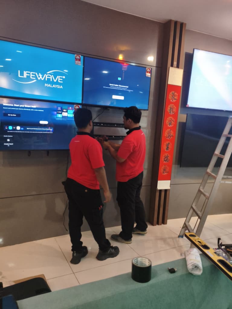We don’t just hang TVs; we engineer visual experiences. A prime example of our premium service is our recent project supplying and installing a network of 43-inch TV displays at the LIFEWAVE Malaysia office.