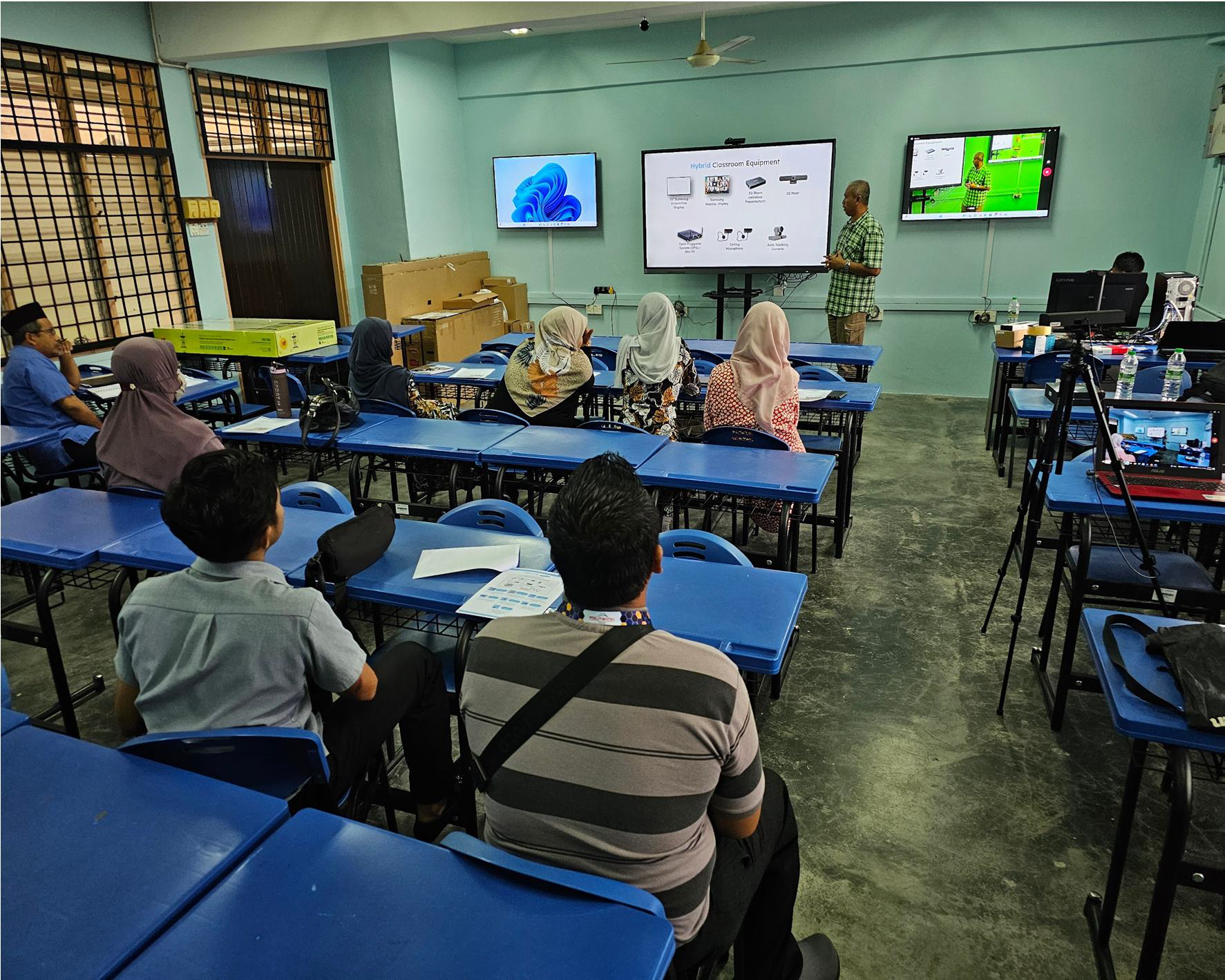 The Hybrid Classroom at Politeknik Ungku Omar incorporates thoughtfully selected hardware and systems to support dynamic instructional delivery: